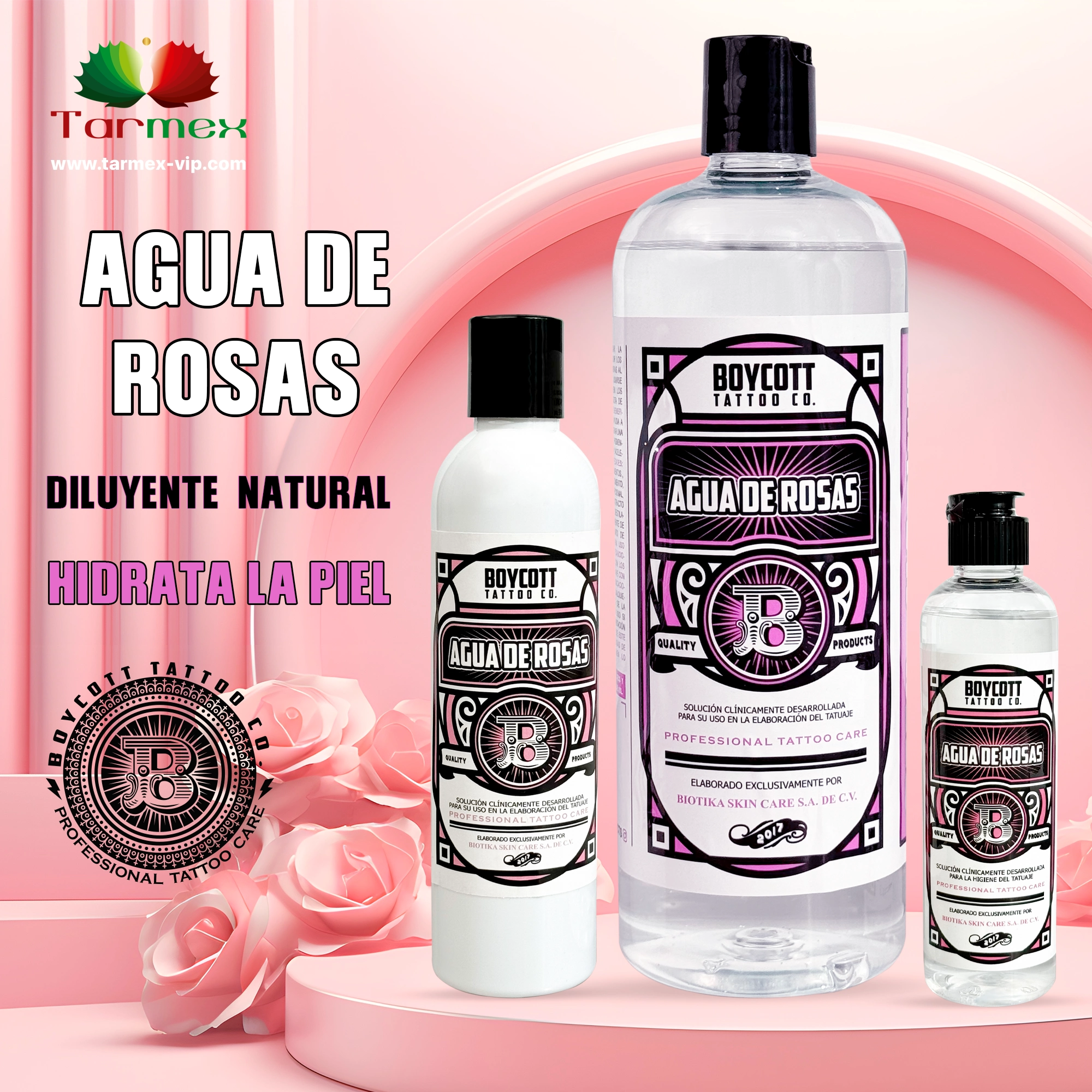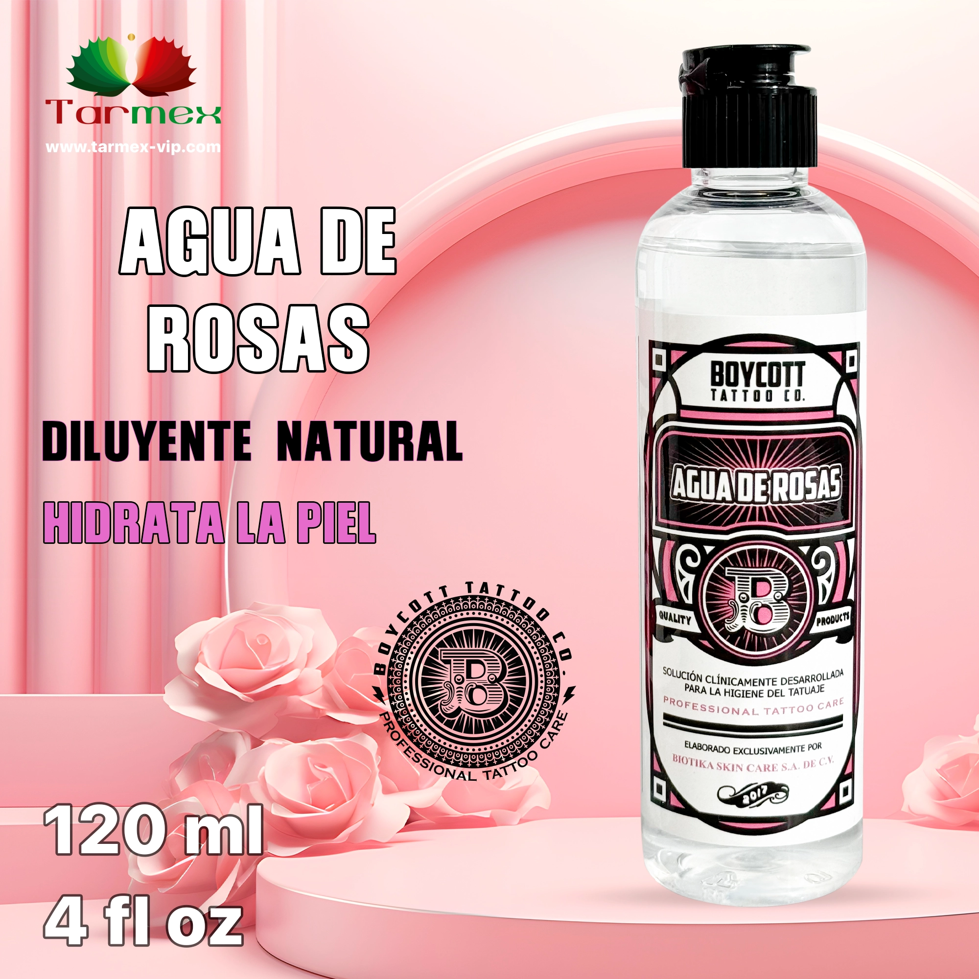 El agua de rosas se utiliza principalmente por vía tópica para reducir la inflamación, promover la cicatrización del tatuaje y mejorar la salud general de la piel.